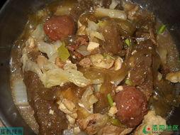 3. 鸡肉烩菜:鸡肉、金针菇、豆腐泡、白菜、香菇等。